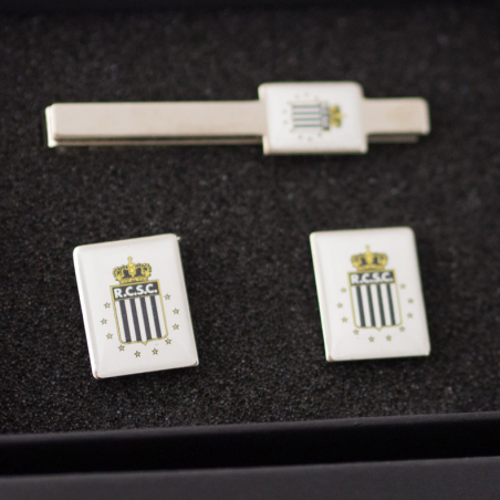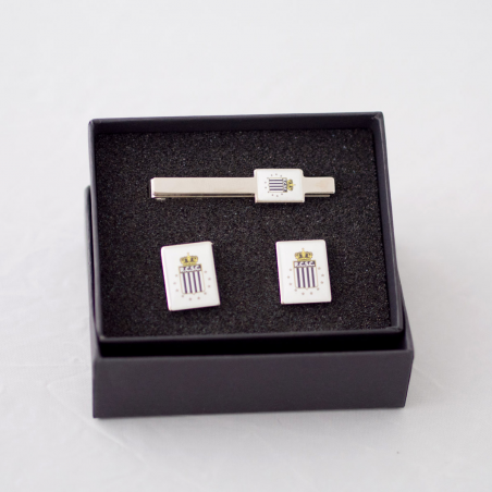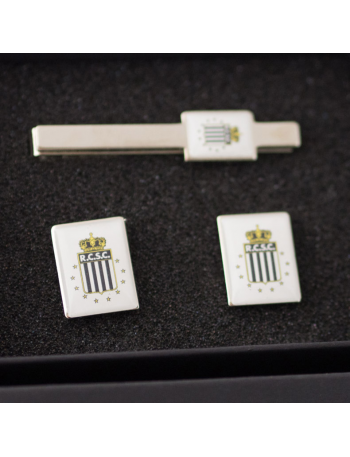 Une pince à cravate et une paire de boutons de manchette au logo du Sporting !