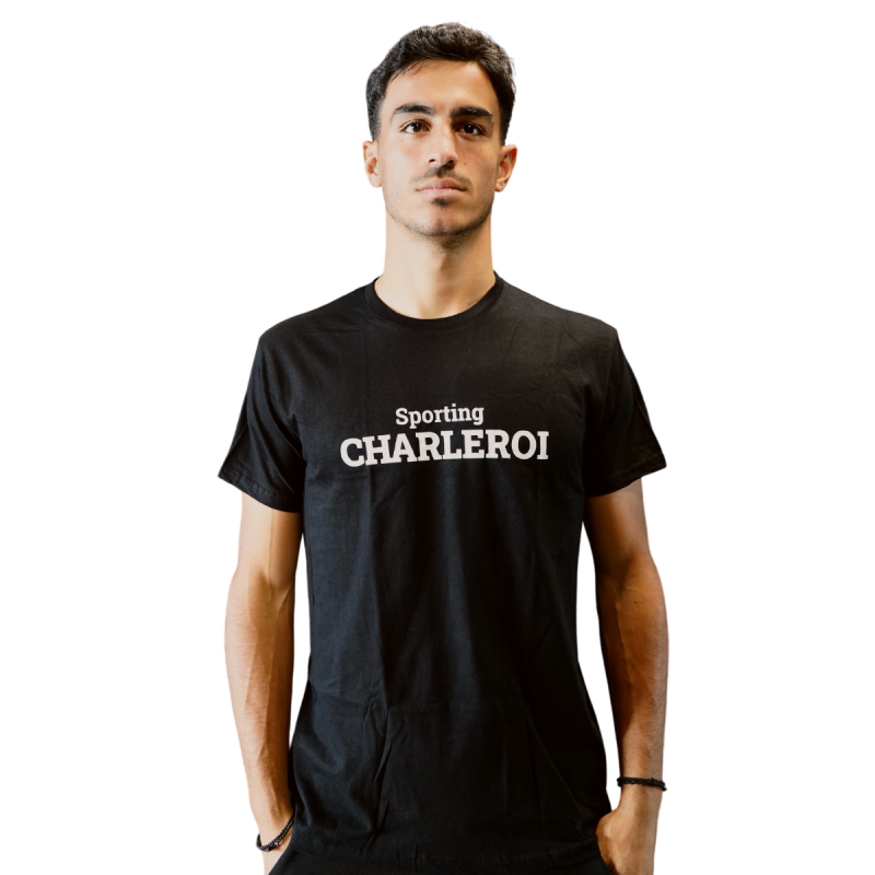 Description : Le t-shirt Sporting Charleroi est un t-shirt noir en coton, orné d'une écriture "Sporting Charleroi" en grande taille sur le devant. Ce t-shirt est léger, confortable et respirant, parfait pour les journées chaudes.